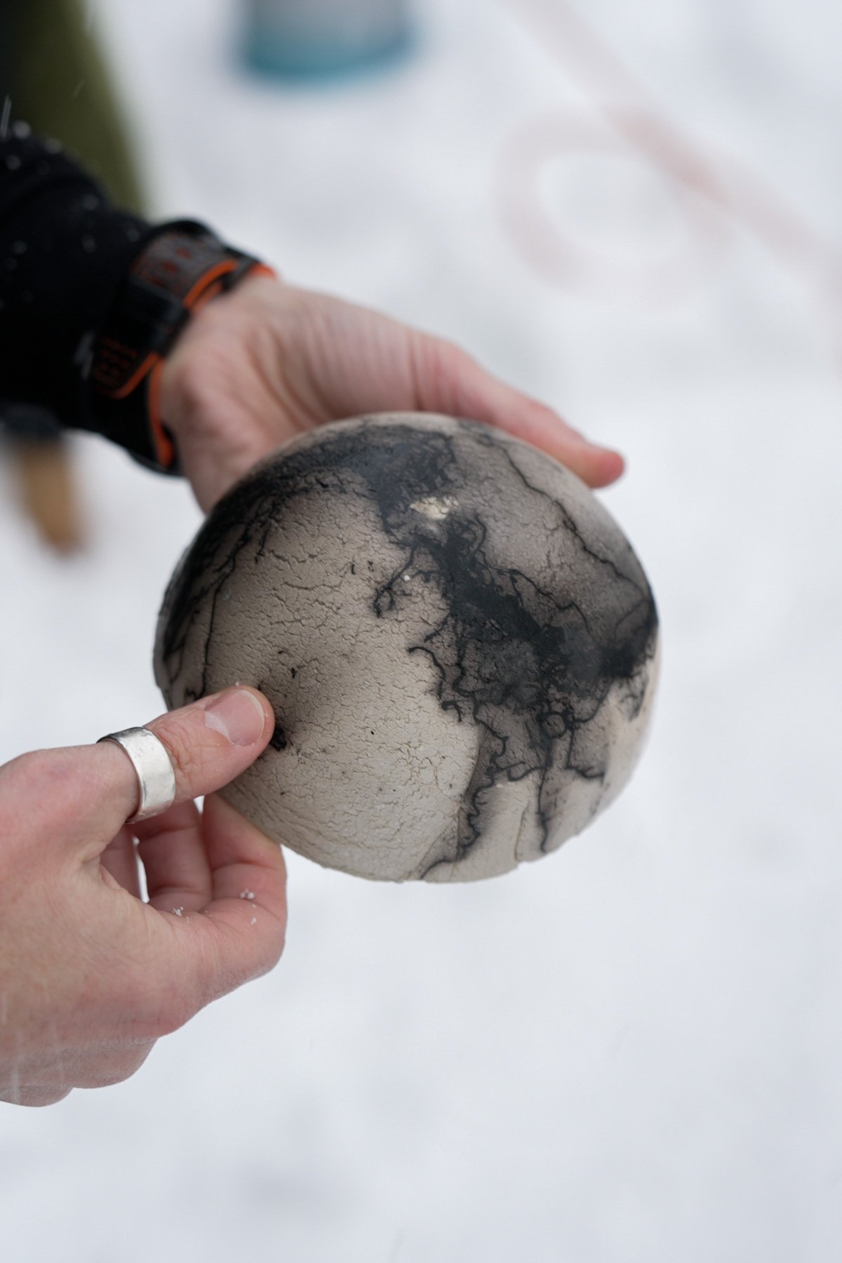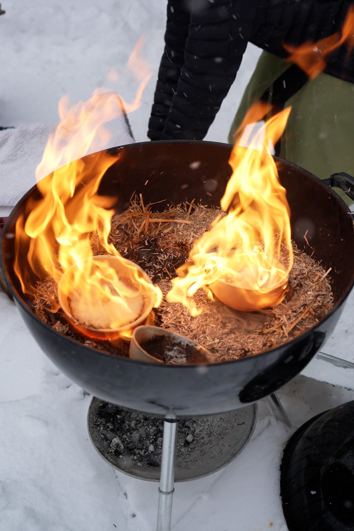 You will start the week, handbuilding a plate or a bowl. It will be dried and biscuit fired - Then on your last day - the excitement starts as we heat the item to 1000°c - when it is white hot, we then pattern it with feathers, horse hair, your own hair or any other magic and finally - thermal shock it, so the glaze becomes crackled. This will be ready to take home with you.